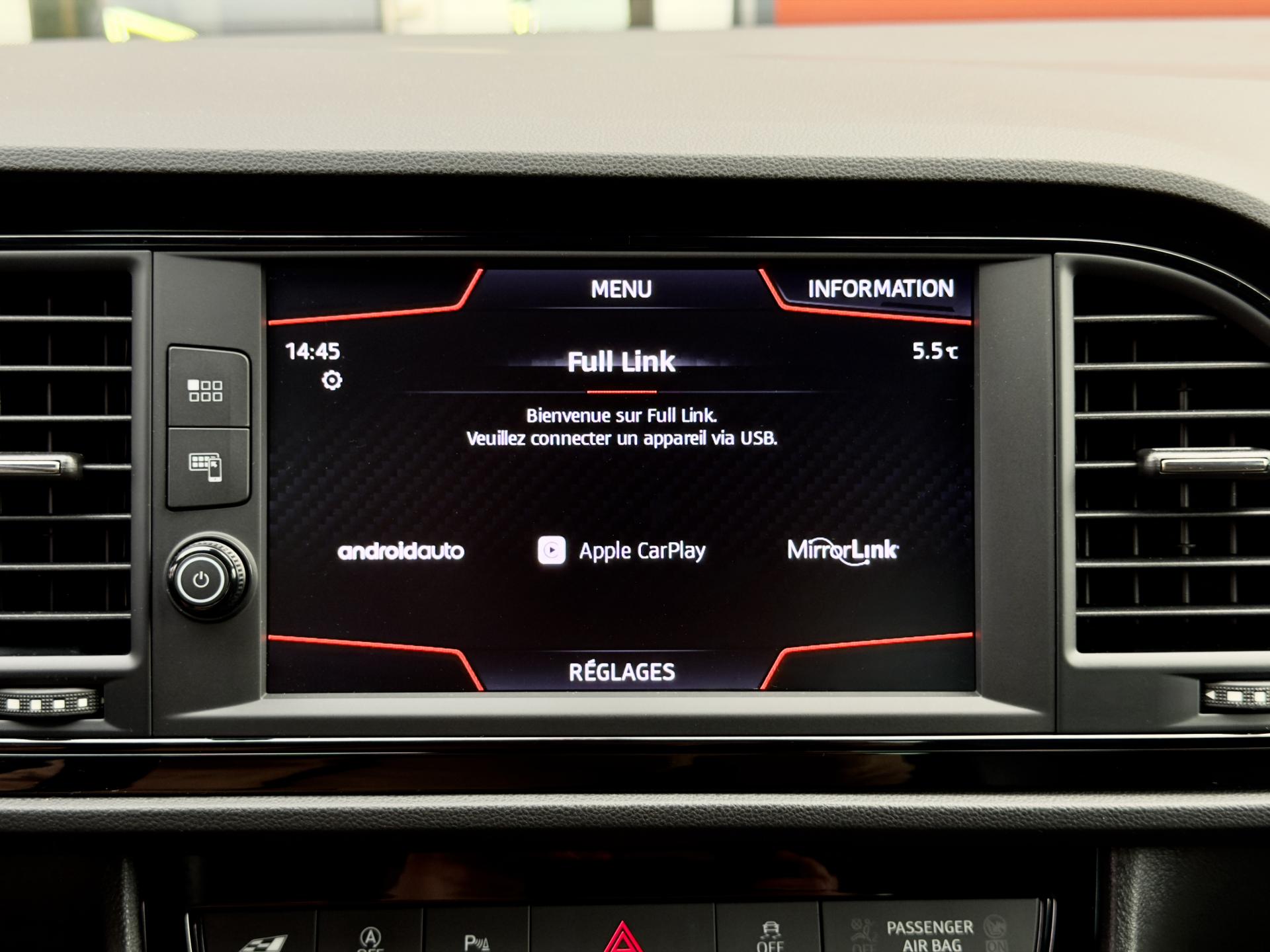 - Écran tactile compatible Full link Apple CarPlay et Android Auto: utilisez les applications de votre smartphone telles que Spotify, Waze, et Coyote