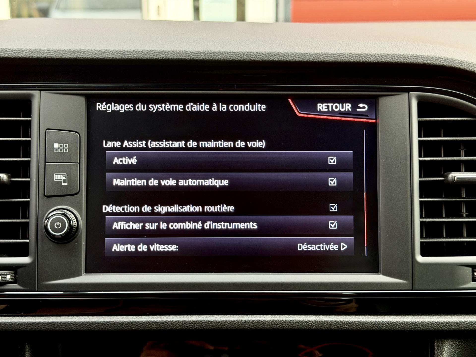 - Pack Full Drive Assist : détection panneaux signalisation, avertisseur de franchissement de ligne, contrôle des phares: feux de route/croisement automatiques, régulateur de vitesse adaptatif avec Front Assist