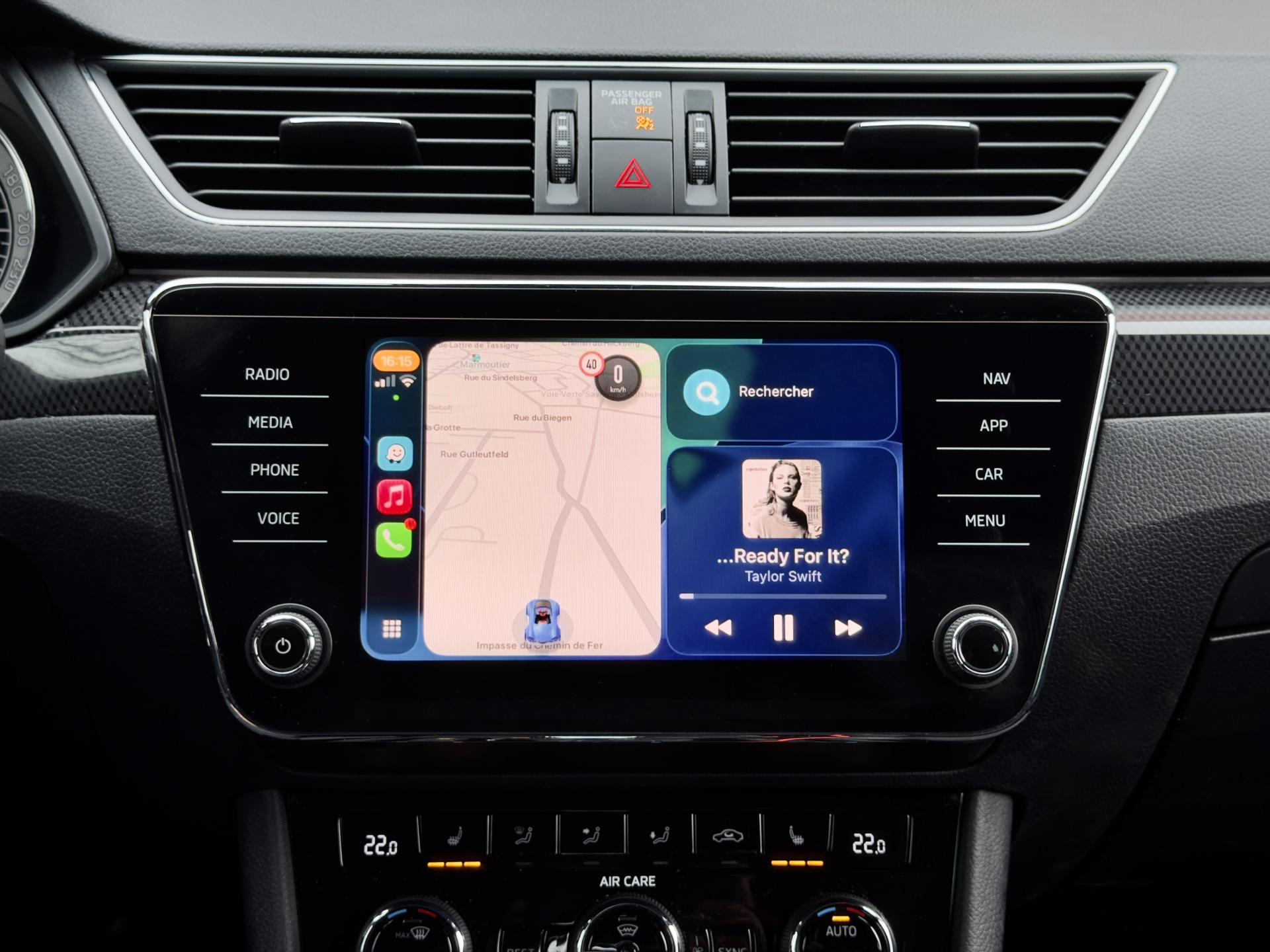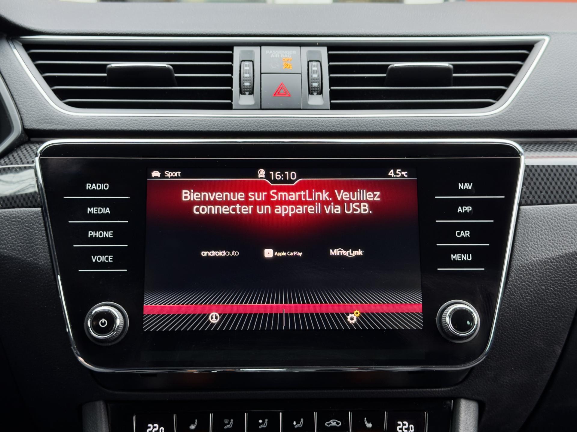 - Écran tactile compatible Smartlink, Apple CarPlay et Android Auto: utilisez les applications de votre smartphone telles que Spotify, Waze, et Coyote
