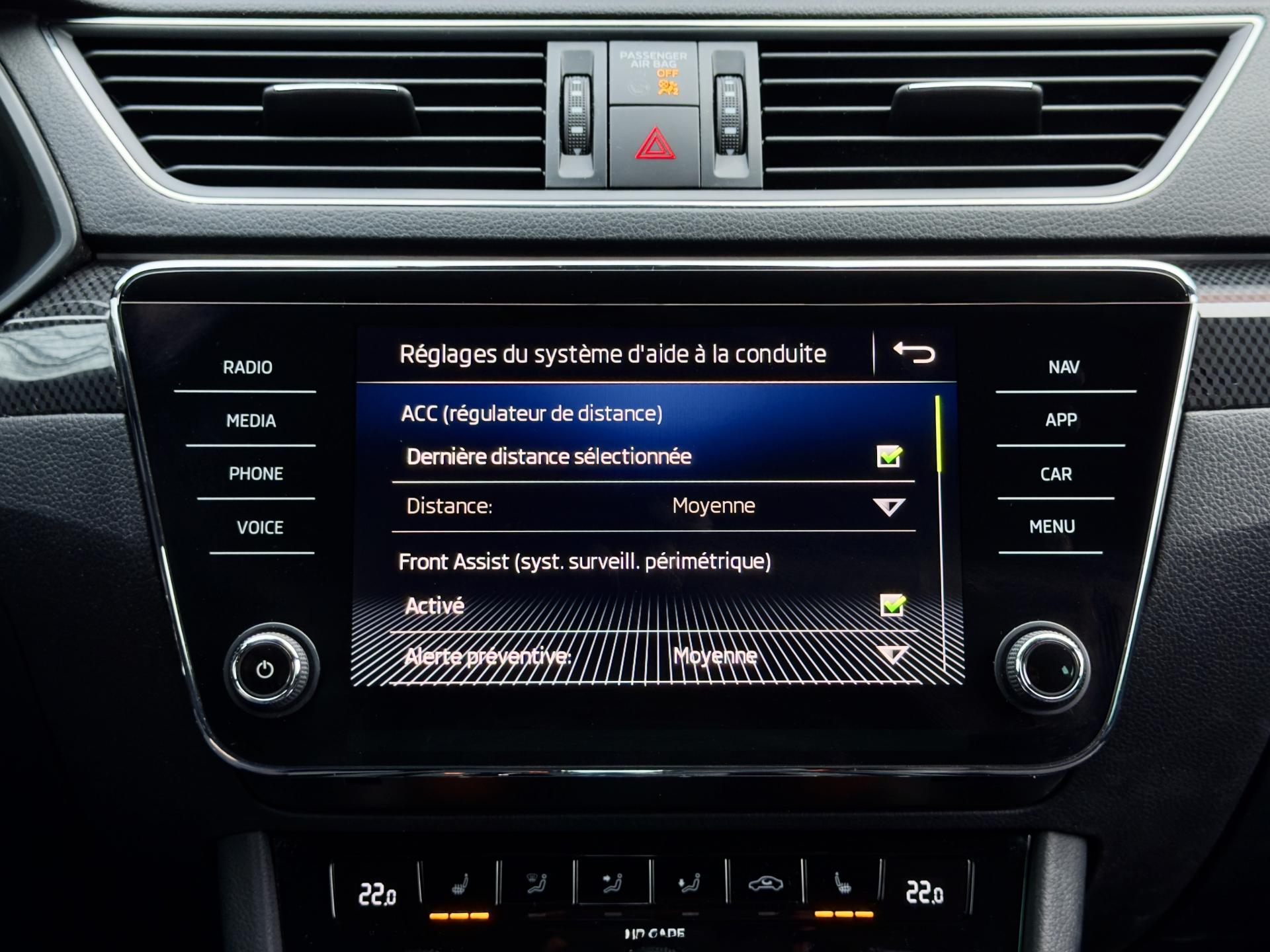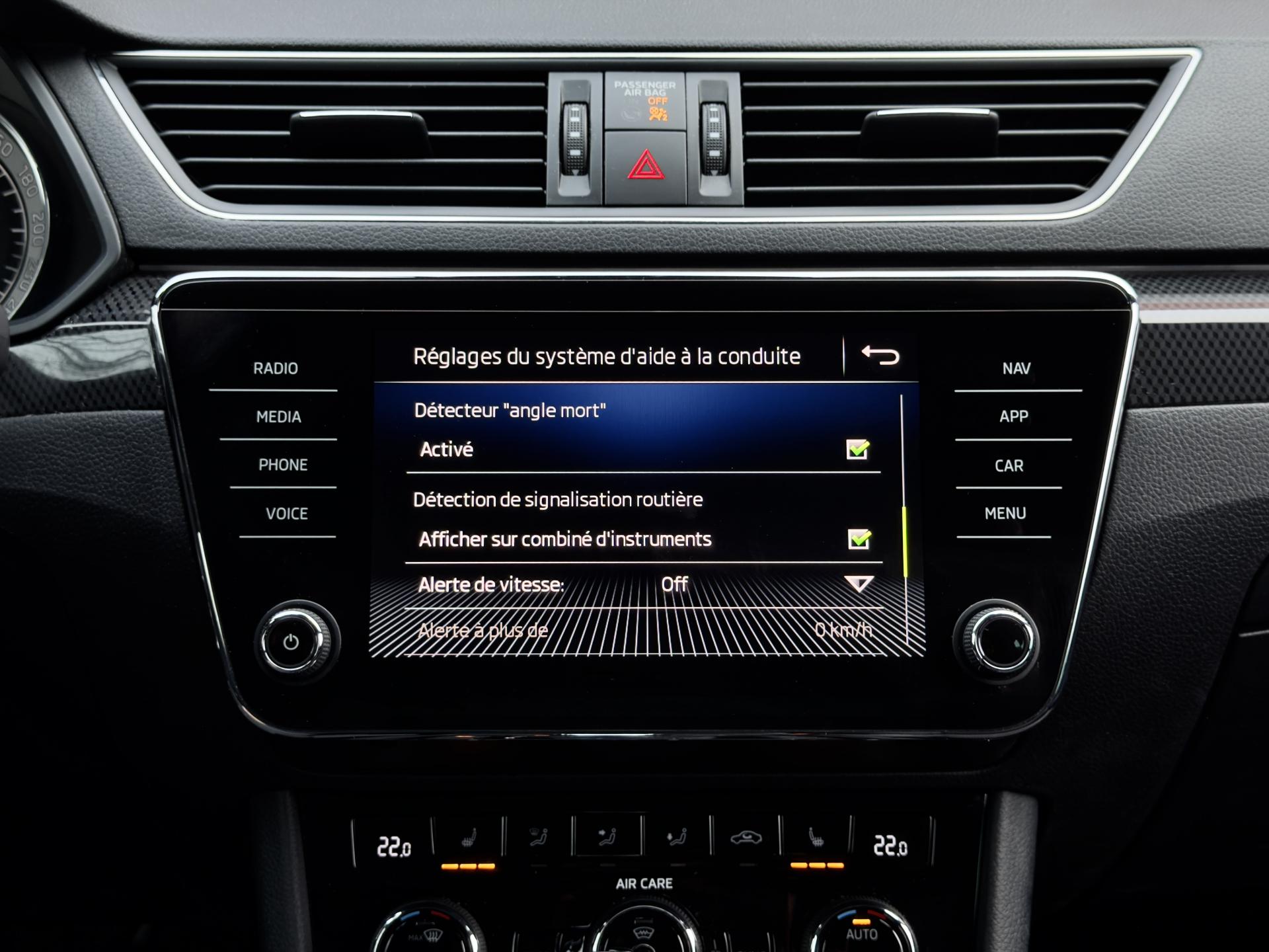 - Airbag genoux conducteur, airbags frontaux conducteur et passager (passager déconnectable), airbags latéraux thorax intégrés aux sièges avant et airbags rideaux avant et arrière.