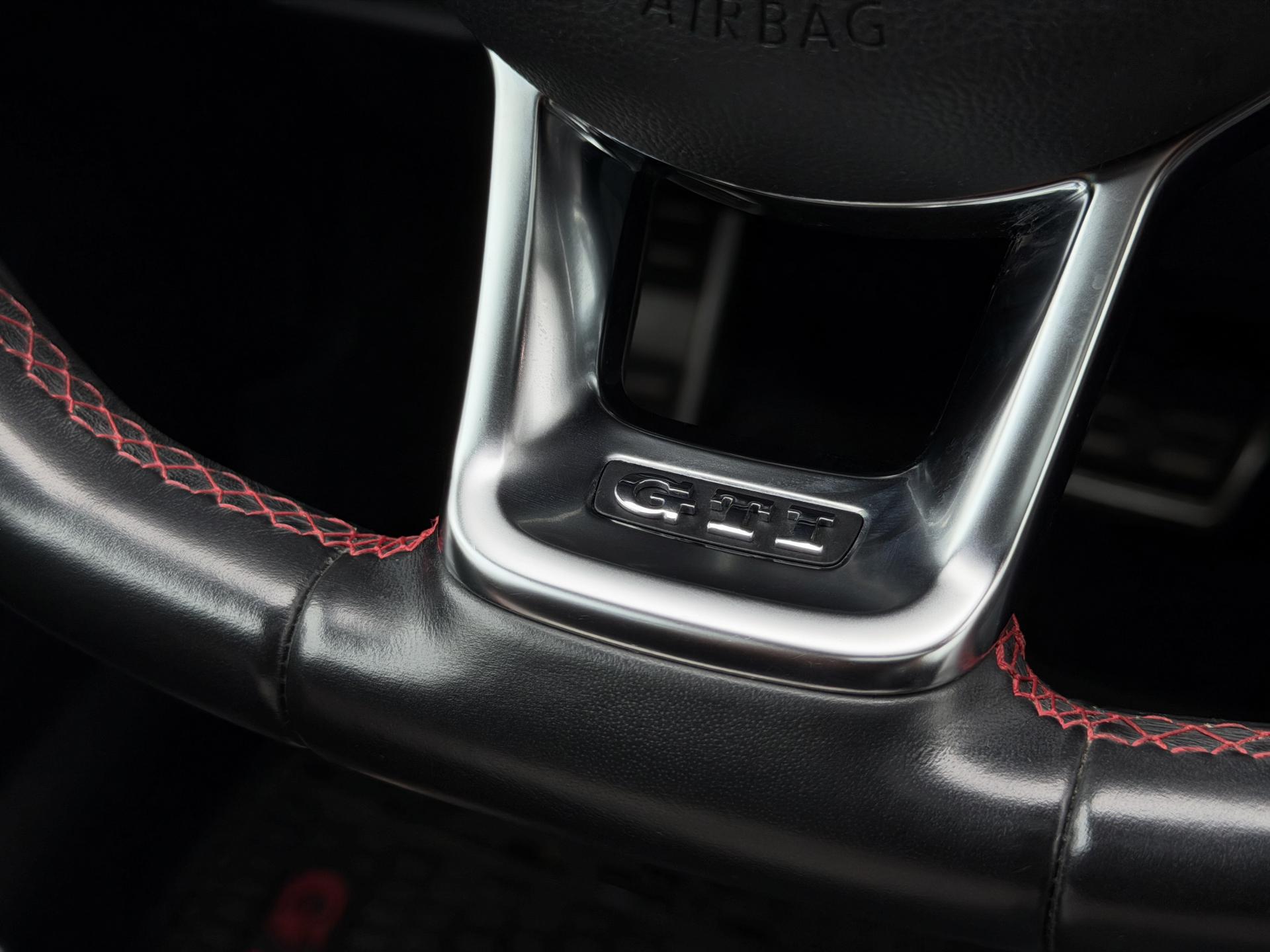 - Logo GTI écrit en blanc sur les étriers de frein rouge à l'avant